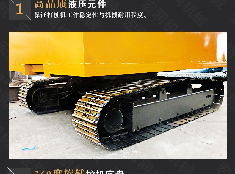 履帶打樁機(jī)采用履帶移動(dòng)形式,具有移動(dòng)靈活就位方便,此外電器液壓全部采用集中控制,操作方便,減少了工人的勞動(dòng)強(qiáng)度。